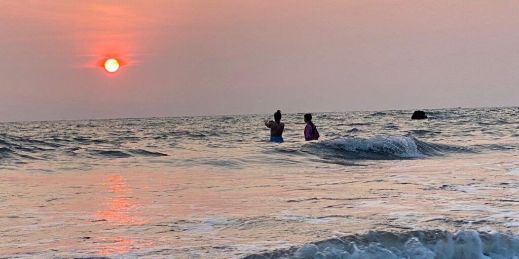 Another swim, the sun setting in the sea, and then dinner, prepared with much love by Indu.