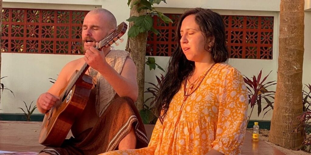 accompanied by heartwarming bhajans and sacred heart songs sung by Sky Govinda.